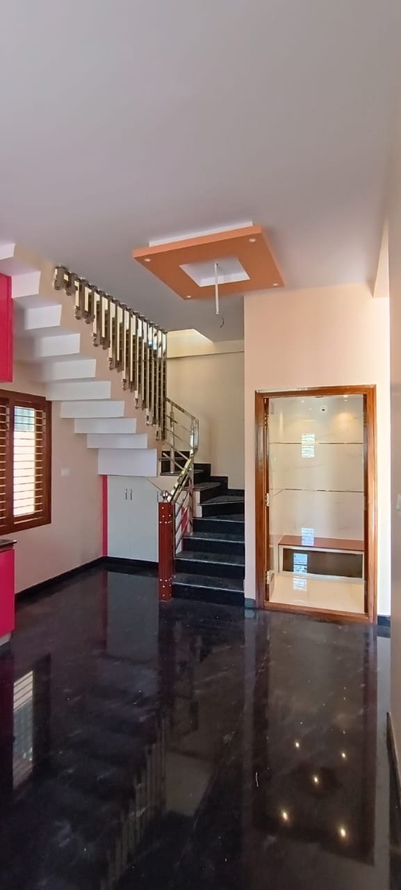 Brand new 3 BHK Duplex house- East facing built as per Vaastu on 30*40 East facing site at Vijay Nagar 4th stage 2nd phase (near Marimallappa School). Columns Structure built by Qualified Engineer. All Teak doors & windows, Granite flooring, 3 Bathrooms with Jaguar plumbing fixtures, Hindware Sanitary wares. 304 grade SS railings with Toughen Glass luxurious Decorative false ceiling works. Luxuriously furnished Interiors. Asian Royal luxury Emulsion painting and PU wood polish for Teak doors and windows